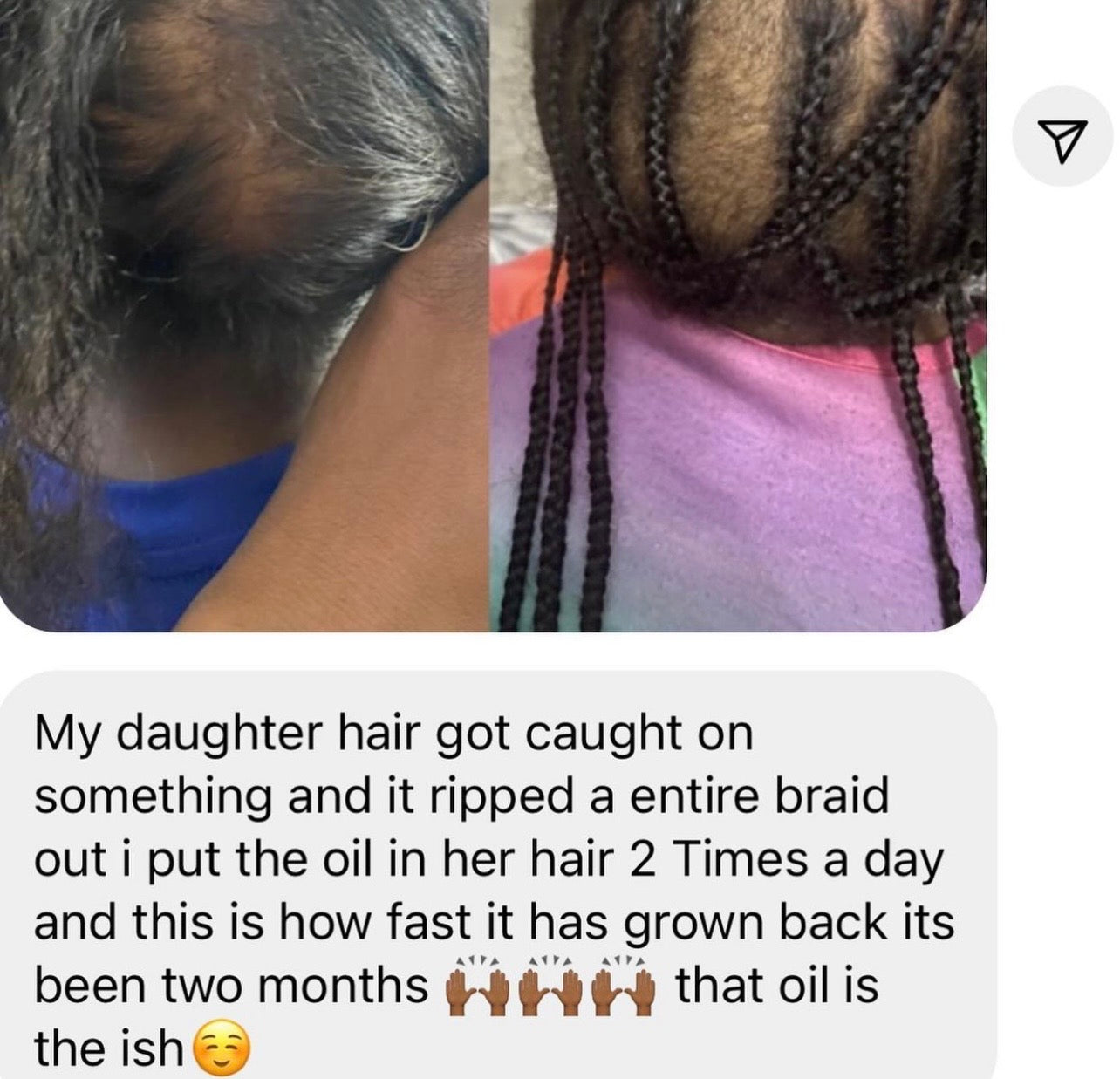 Our Hair Growth oil is made for women of all ages & race. Our oil is made to strengthen your hair, add nutrients to your hair, and grow your hair full and healthy.
